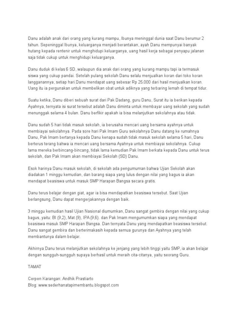 Dokter mengatakan bahwa karen jatuh dari tangga dan kepalanya terbentur. Contoh cerpen anak sekolah dasar : Waah gak nyangx ternyata cerita'x bagus cukup menginspirasi…. Kumpulan contoh cerpen persahabatan sejati sd, smp, sma, smk lengkap.